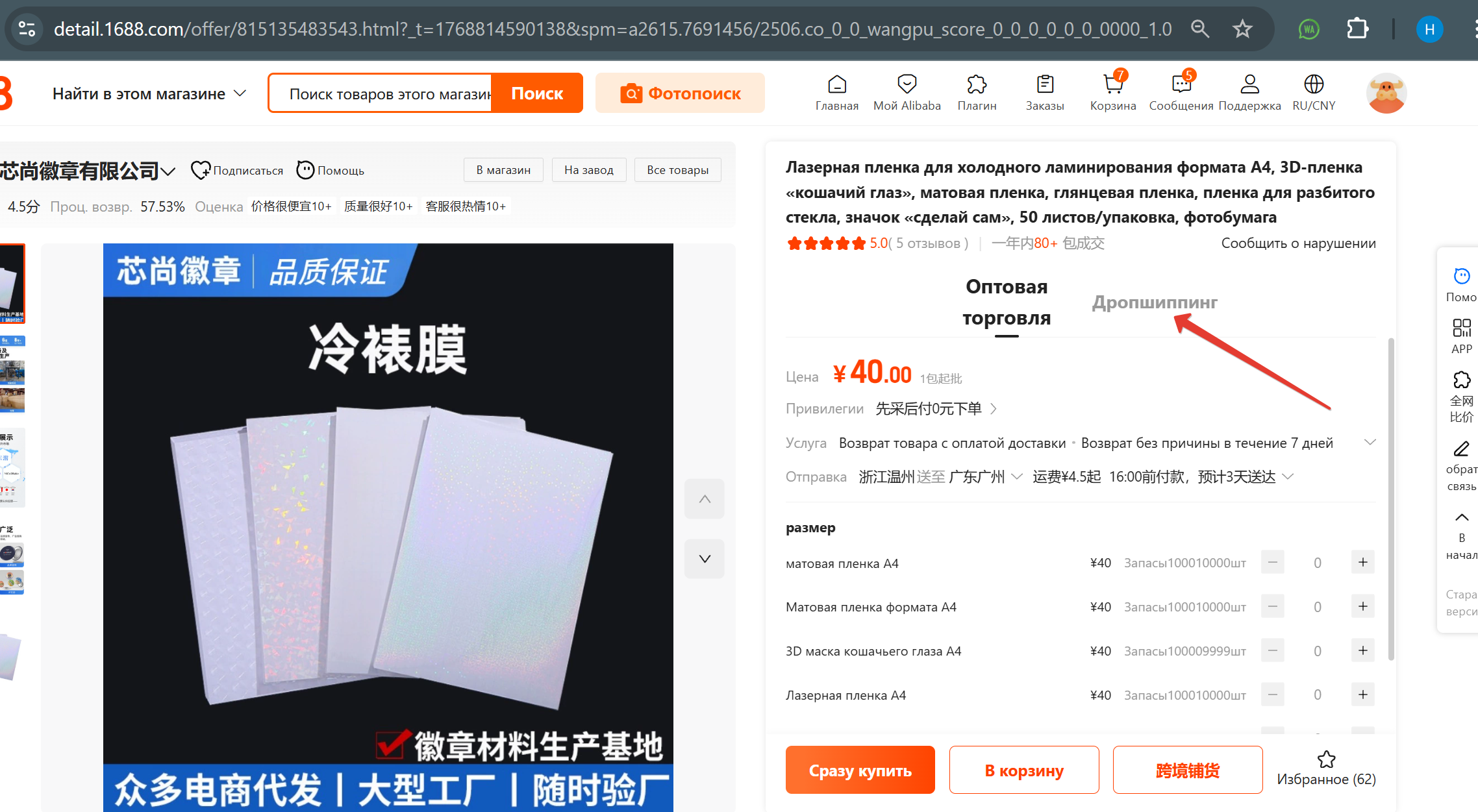 Если же вы хотите все изучать на русском, то для оформления заказа используйте вкладку ДРОПШИППИНГ с китайской версией.